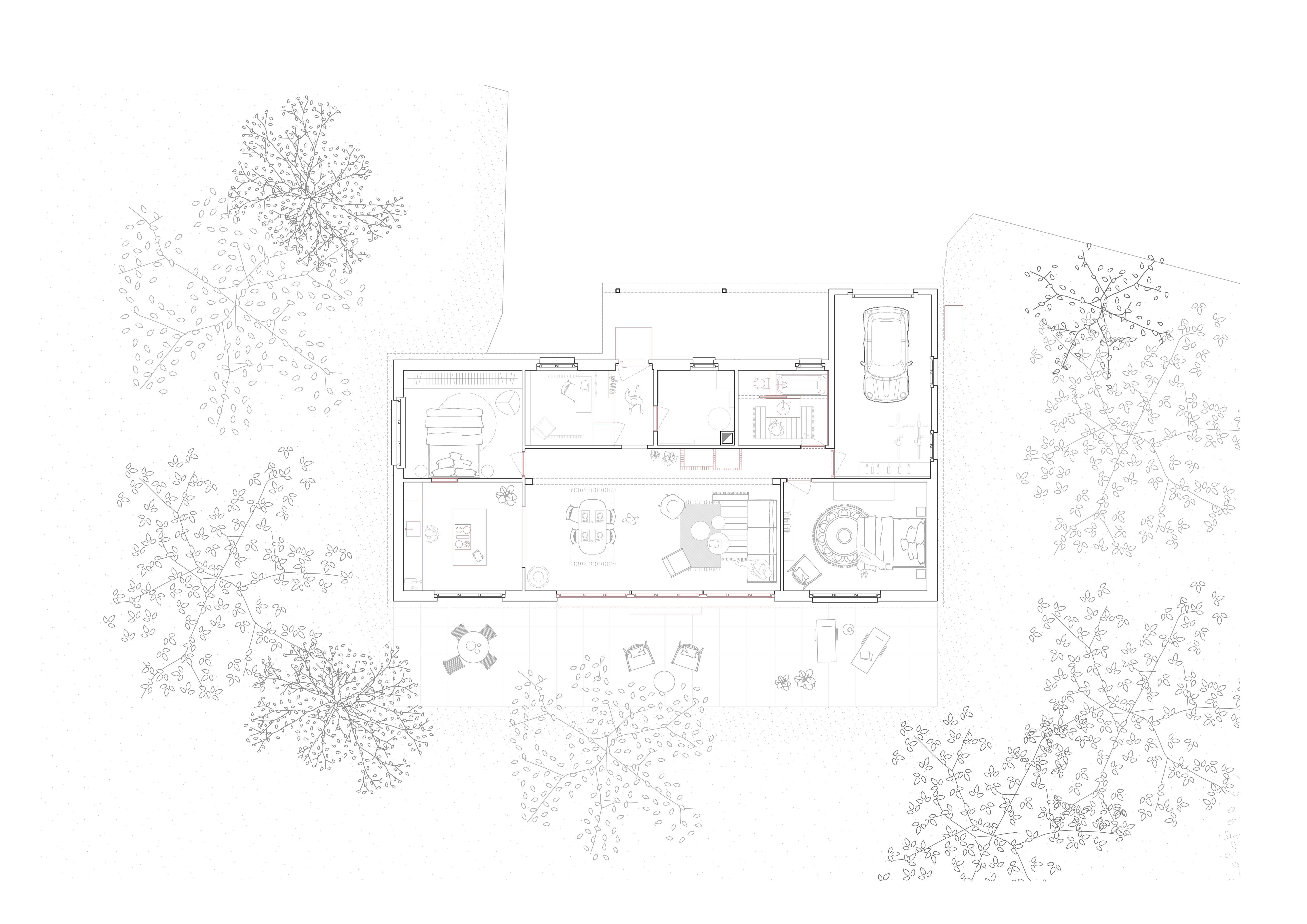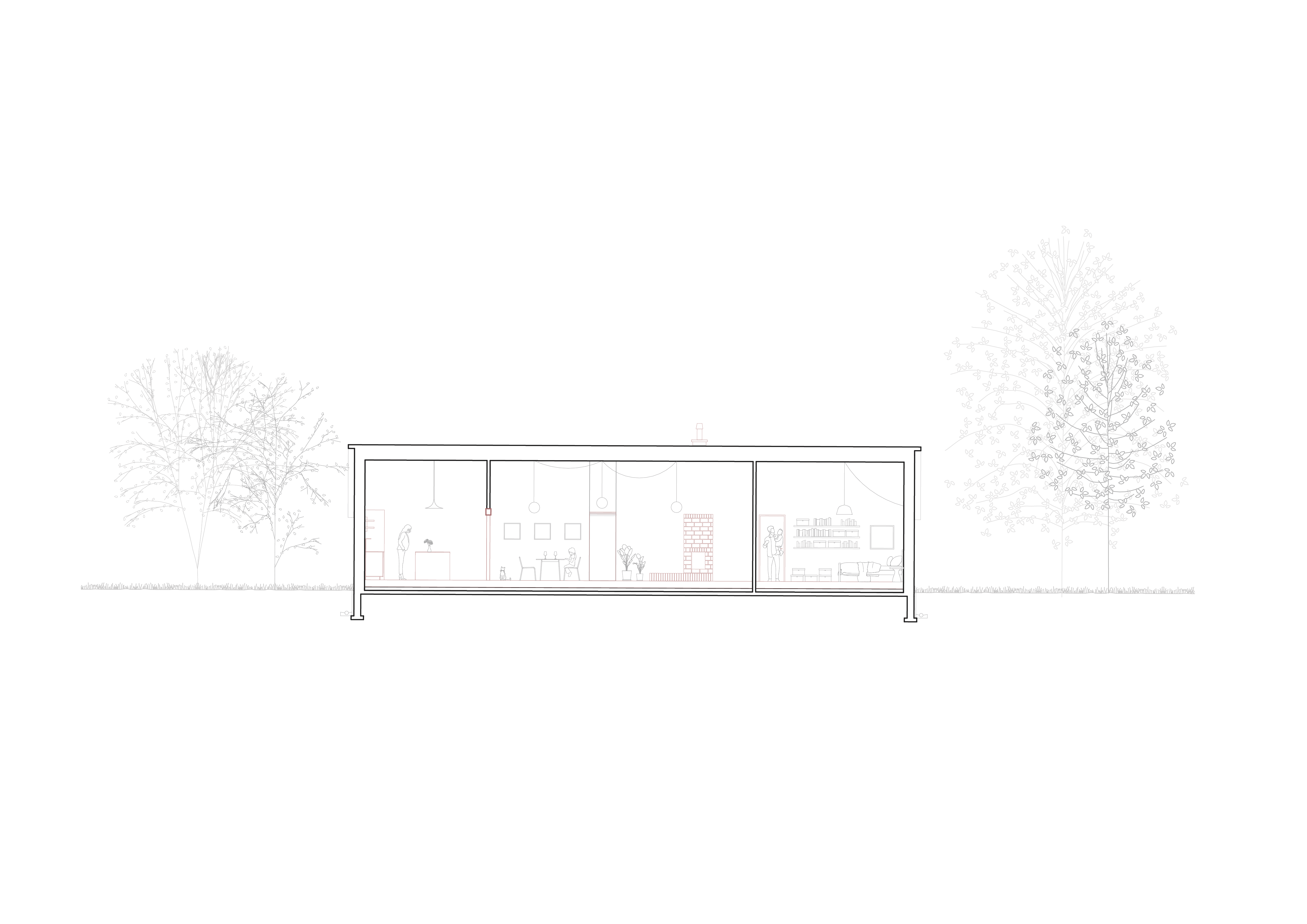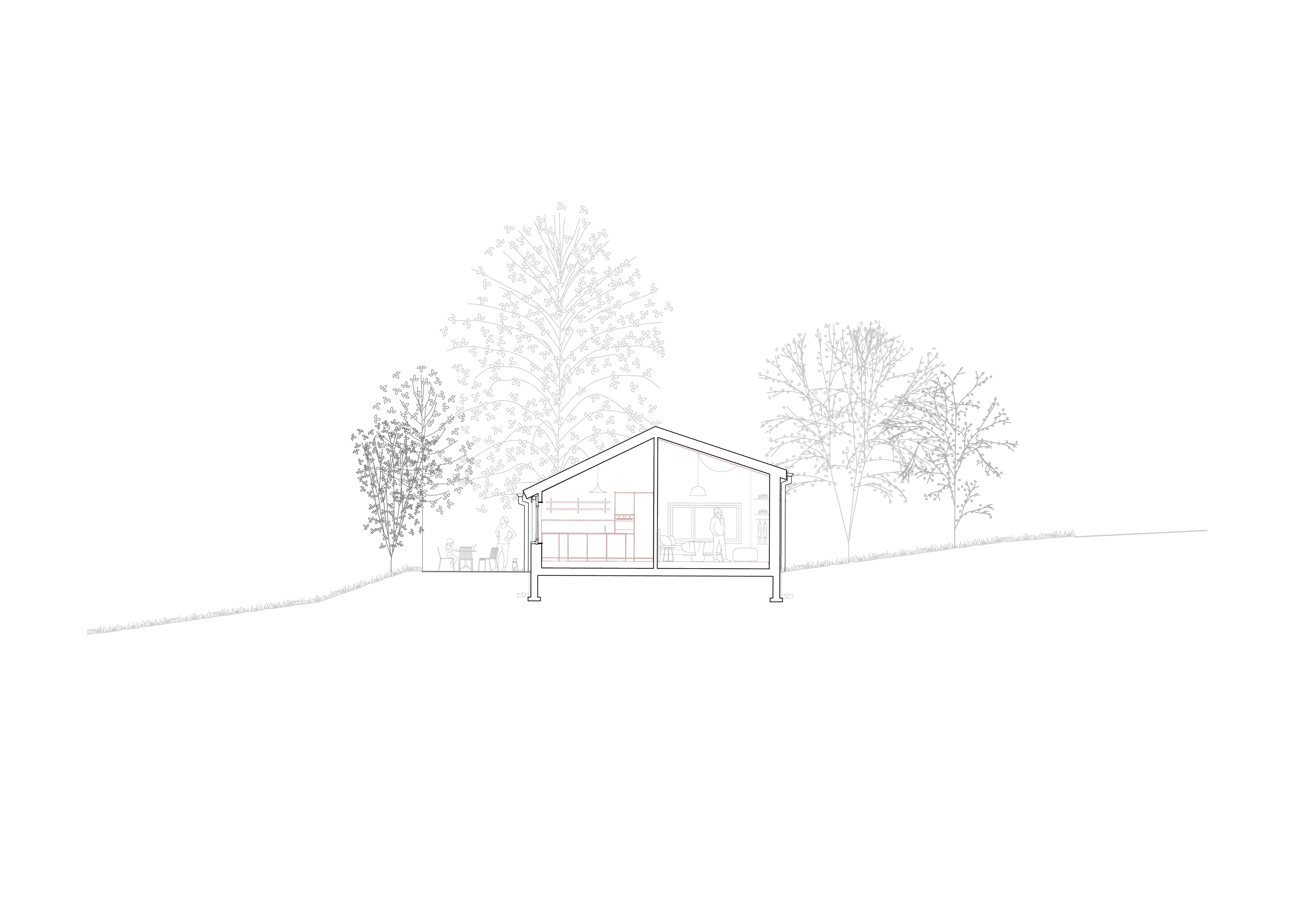 Le projet s’inscrit dans une démarche de transformation, où l’existant constitue le point de départ de toute intervention. Il propose une intervention intérieure mesurée et respectueuse du bâtiment datant de 1983, visant à clarifier l’organisation des espaces et à améliorer la fluidité des usages, ainsi, la cuisine et la chambre sont inversées.